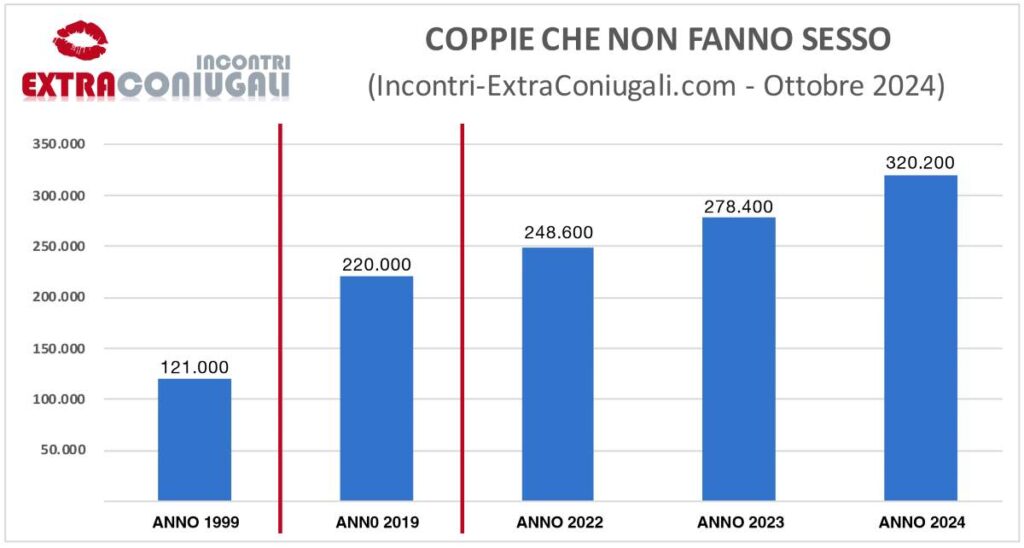 «I motivi che portano a non avere attività sessuale sono diversi: dai problemi di routine quotidiana allo stress lavorativo, dal disinteresse reciproco ai problemi di salute. E non è raro che molti partner trovino una complicità più affettiva che fisica, preferendo condividere momenti di vicinanza emotiva piuttosto che atti sessuali veri e propri» spiega il fondatore di Incontri-ExtraConiugali.com.